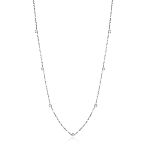 3. Sterling Silver Rhod-Plate Essentials Small Station Lab-Created Diamond 0.50CTW Necklace 22" Adjustable