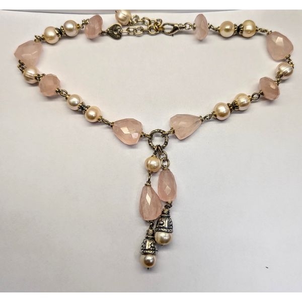 17" Sterling Silver Rose Quartz & Pearl Drop Necklace Swede's Jewelers East Windsor, CT