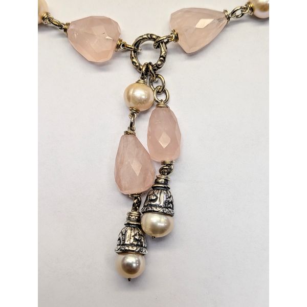 17" Sterling Silver Rose Quartz & Pearl Drop Necklace Image 2 Swede's Jewelers East Windsor, CT